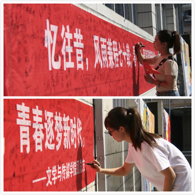 同日中午,滚球买球官网团总支在江南校区林荫道旁组织了“我为祖国母亲庆生”签字仪式,大家在“忆往昔,风雨兼程七十载;看今朝,青春逐梦新时代”的横幅上签上了自己的名字,一笔一划,皆是对祖国归属感和自豪感的表达。