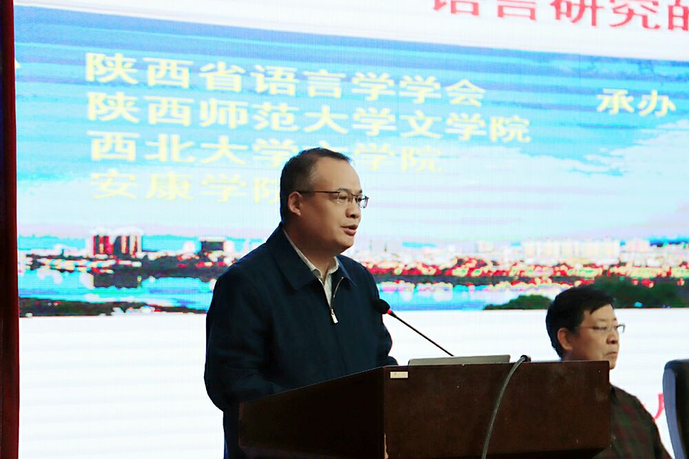 陕西省语言学会会长、陕西师范大学文学院教授胡安顺在开幕式上致辞。胡安顺对陕西语言学学会的发展情况以及近年来的学术研究情况进行了介绍,并希望陕西省语言学学者进一步发扬精心向学的精神,多出经典著作、不朽传世著作。