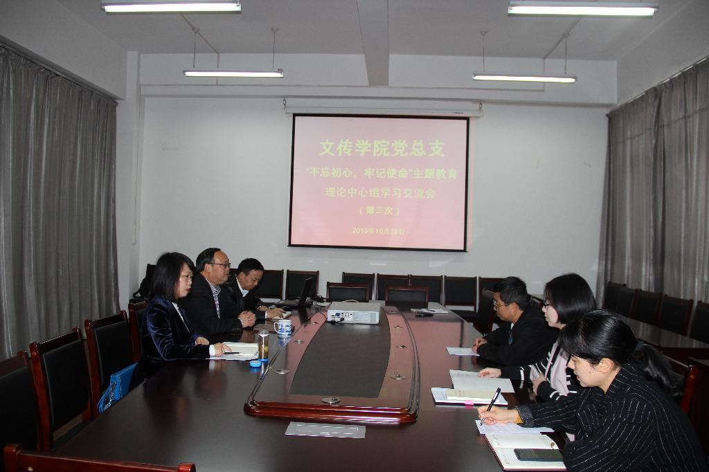 10月23日下午14:30,滚球买球的app官网中心组在陕南民间文化研究中心会议室召开“不忘初心、牢记使命”主题教育第三次学习交流会,会议由党总支书记于咏梅主持,中心组全体成员参加会议。