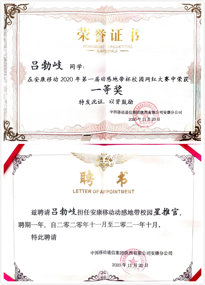 经过近2个月的精彩角逐,“青春心向党 建功新时代”安康移动“动感地带”杯校园抖音网红大赛圆满落下帷幕,滚球买球的app官网网络与新媒体专业2017级吕勃岐同学的作品《这就是安康》荣获一等奖,并被聘请担任安康移动动感地带校园星推官。