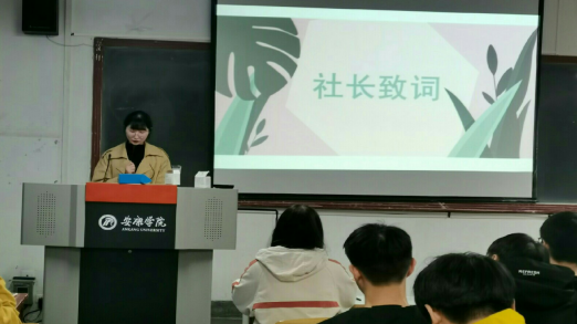 在主持人激昂的开场白后,新生见面会正式开始。首先,本届社长周倜上台发言。她先是对大家的到来作出欢迎,随后对社团进行了介绍。在介绍中她强调,风华诗社作为滚球买球的app官网下设的九大社团之一,将继续以“继承优秀传统文化,弘扬爱国爱民精神”为原则,举办各种形式多样的活动,为社员们的学习交流提供更好的平台。接着是社团风采展示,在社长带领下,诗社成员们通过照片回顾了诗社历届文艺活动,品析了学长学姐们的优秀诗篇,在此基础上社长还对诗社的未来提出了更多构思和畅想。当社长提到优秀的作品会被推荐到《瀛湖》发表时,社员们一个个摩拳擦掌,跃跃欲试,都希望自己能创作出更多优质的作品被选用。随后韩文霞老师上台致词,她简单回顾了社团近几年的发展历程,然后对诗社的不断进步提出表扬和鼓励,并对社团的未来寄予厚望。当提到文学创作时,她谈道:对待文学我们需要端正态度,要积极、主动地利用好身边的资源去学习和创作。在诗社这个大家庭里,大家可以共同交流,相互借鉴,用文字表达自己内心最真挚的情感。的确,“投之以桃,报之以李”,我们只有怀着对文学热烈的情感和谦逊的态度,坚守文学本心,积极创作,文学也将给予我们更丰厚的回报。韩老师的发言风趣幽默,引来阵阵笑声,但笑声过后其中的道理却又值得所有人回味深思。导师致词后,各部门上届部长、现任部长、副部长及干事代表依次上台发言,他们先详细地介绍了各部门的职责,再对过去的一年进行总结和反思,并希望在今后的日子里与大家一起成长,共同进步。活动最后由社长、副社长上台对本次见面会作出总结,并对新一年的社团工作做好新的规划和安排。