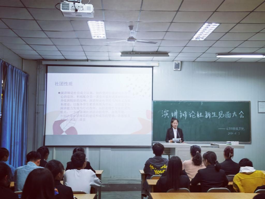 2020年11月7日下午18时30分,滚球买球的app官网演讲辩论社在江南校区1012教室成功举办了换届大会暨新生见面会。参与本次见面会的有演讲辩论社指导教师余珊、前任社长王旭、新任社长南宁及116位社员。会议由杨钰主持。