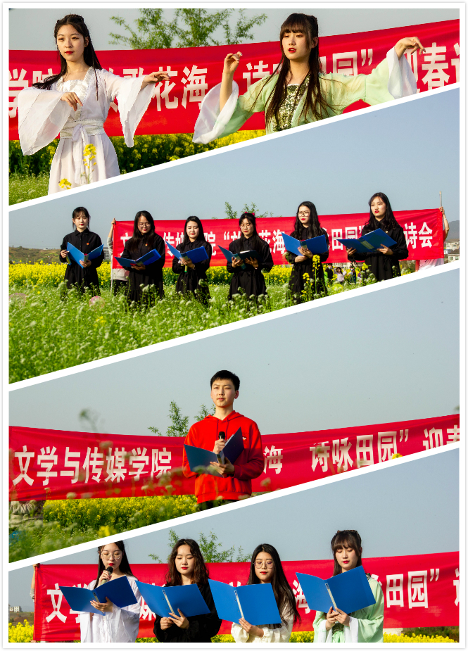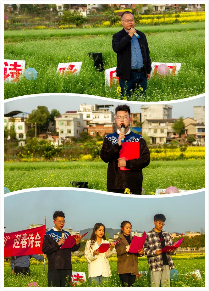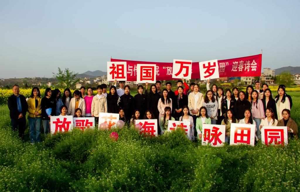 3月22日下午,滚球买球的app官网组织学生在张滩镇黄洋河畔举办了“放歌花海.诗咏田园”迎春诗会。本次活动由影视戏剧社承办,全院48名学生报名参加了朗诵会。滚球买球的app官网党总支副书记杨海蓉、郑继猛教授、辅导员邹棠华参加诗会。