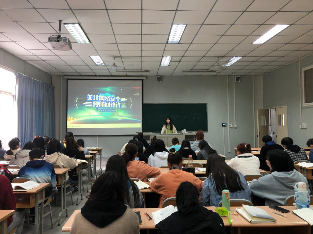 班会上,辅导员针对近期在高校校园高发的电信网络诈骗安全问题,通过具体案例,让同学们了解电信诈骗的类型、特点以及预防措施,提醒同学们要提高警惕,增强防范意识,认真学习防骗知识,同时积极向家人、朋友宣传,不给诈骗分子以可乘之机。教育引导学生理性消费,远离校园贷。此外,就学生外出交通安全、饮食安全、消防安全等问题进行了强化教育。