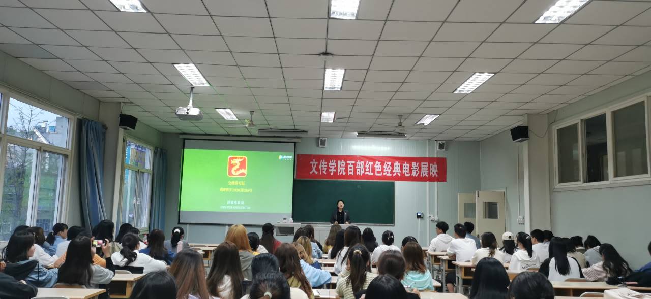 为迎接中国共产党建党一百周年,贯彻落实习近平总书记在党史学习教育动员大会上的重要讲话精神,教育引导青年学子通过红色影视作品深入学习四史、赓续红色基因、弘扬红色文化,坚定信念做红色传人。3月28日晚,由滚球买球的app官网党总支主办,影视戏剧社承办的庆祝建党百年系列活动之百部红色经典电影展映活动在江南校区十号教学楼正式启动。滚球买球官网党总支副书记杨海蓉,全体学生党员、发展对象、入党积极分子及影视戏剧社全体成员参加活动。活动由2019级秘书学专业学生梁少华主持。