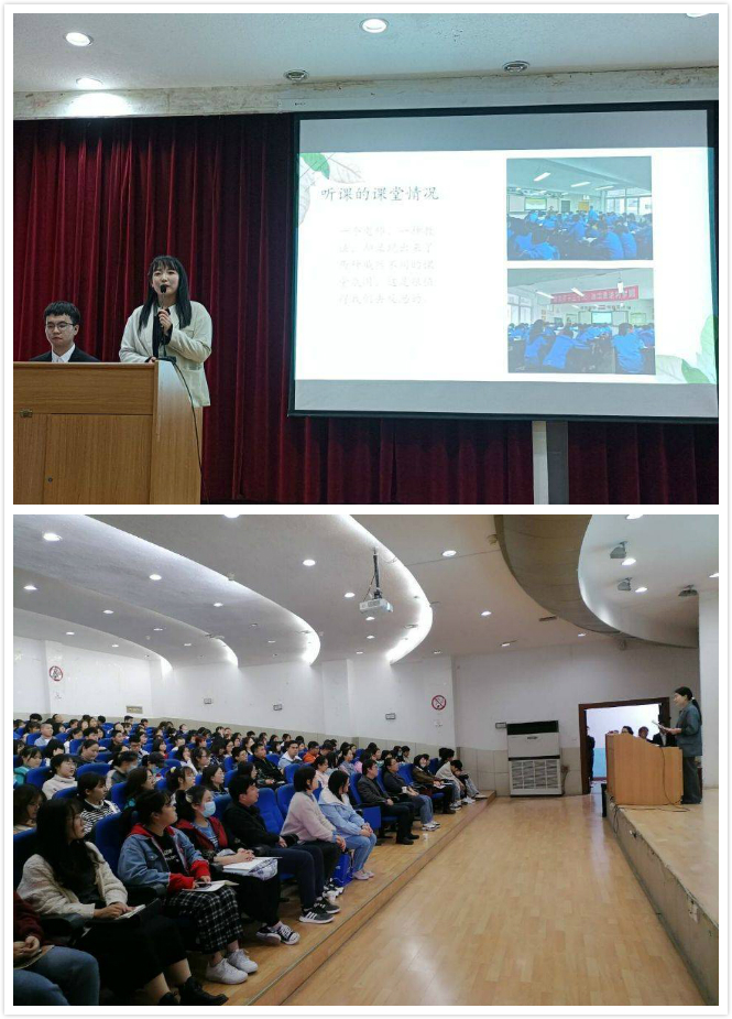汇报活动伊始,副院长朱云以自身经历为例,生动活泼又语重心长地向同学们强调了教育见习活动的重要性和深远意义,希望同学们通过教育见习汇报交流心得,共同提高师范教学技能,为接下来的试讲和实习打下良好基础。