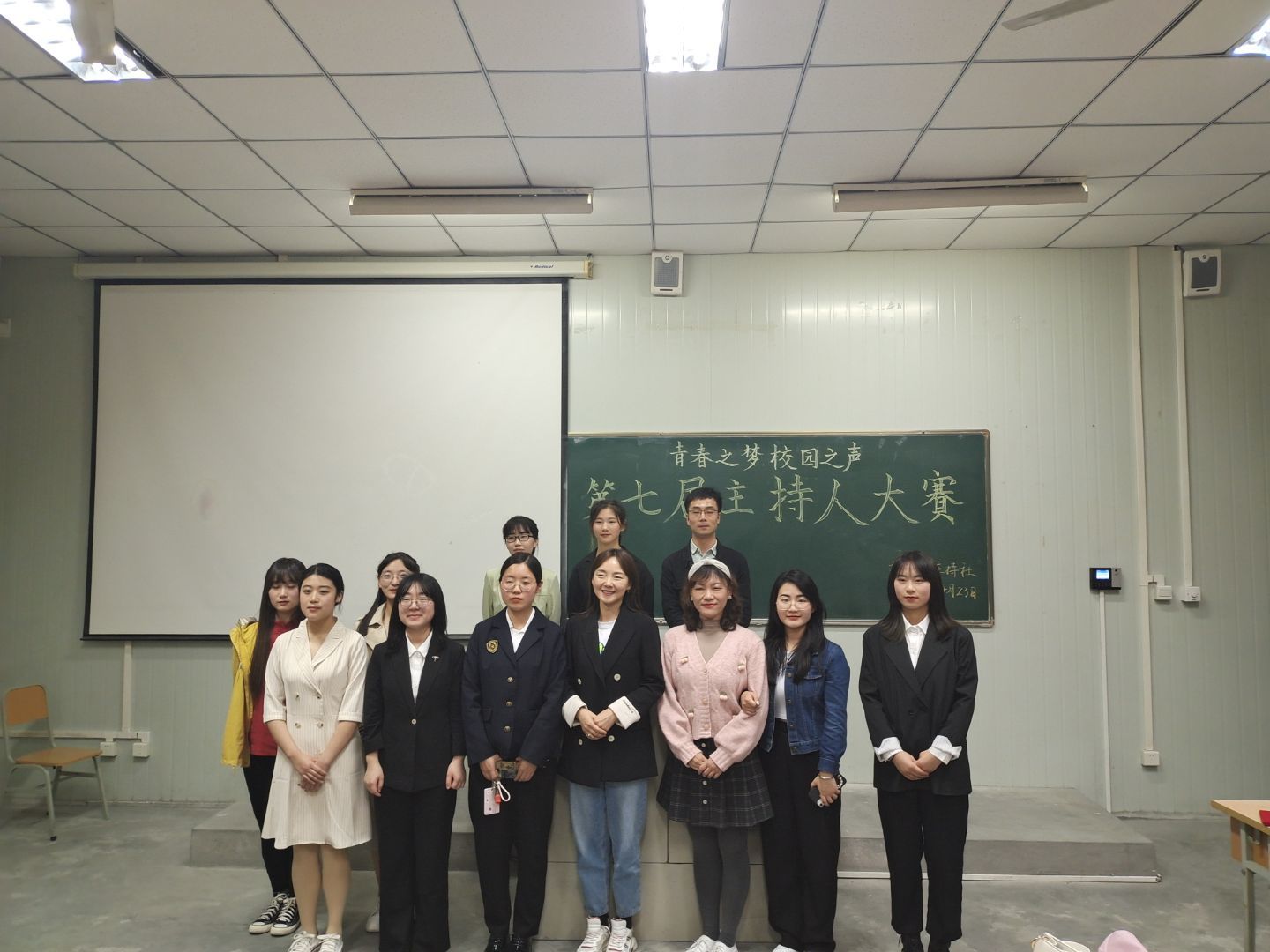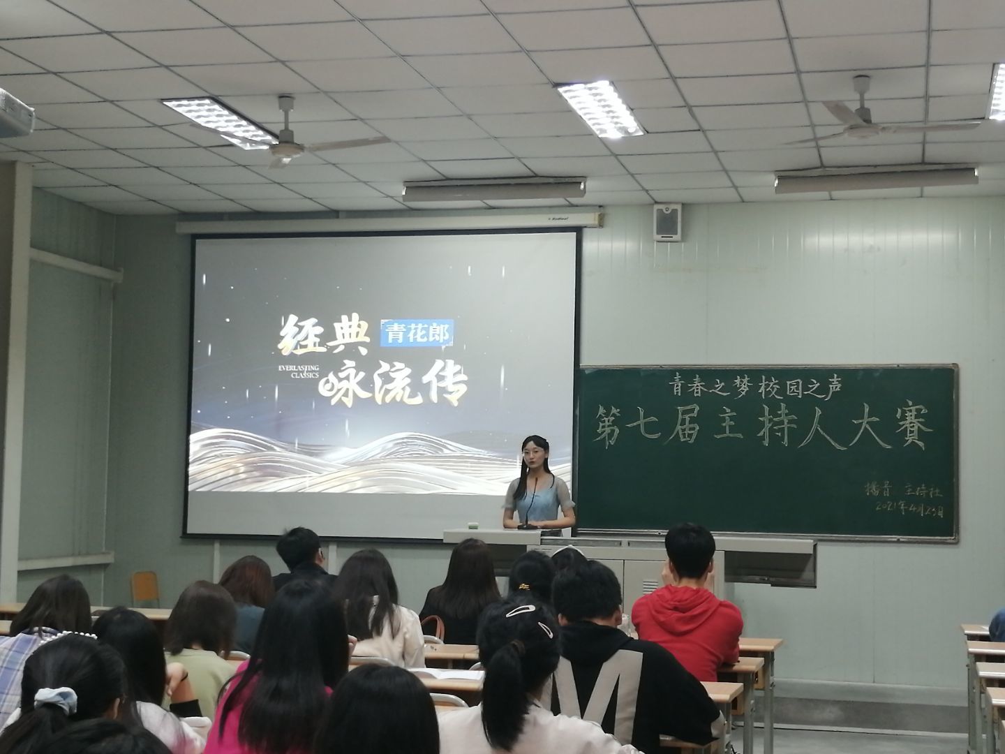 4月23日晚,由滚球买球的app官网播音主持社举办的“青春之梦,校园之声”第七届主持人大赛决赛在江南校区1024教室如期举行。出席本次大赛的评委有滚球买球的app官网邸玲老师、崔瑜老师和社团指导老师黄治强老师。播音主持社全体社员、参赛选手的亲友团以及兴趣观众观看了本次比赛。