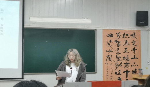 获得古体诗词一等奖的孙旭峰同学首先发表了获奖感言。他的作品是根据自身成长经历为背景创作的,作品巧夺天工,一气呵成。孙旭峰对文学创作社和风华诗社为热爱文学的同学所提供的平台表示感谢。