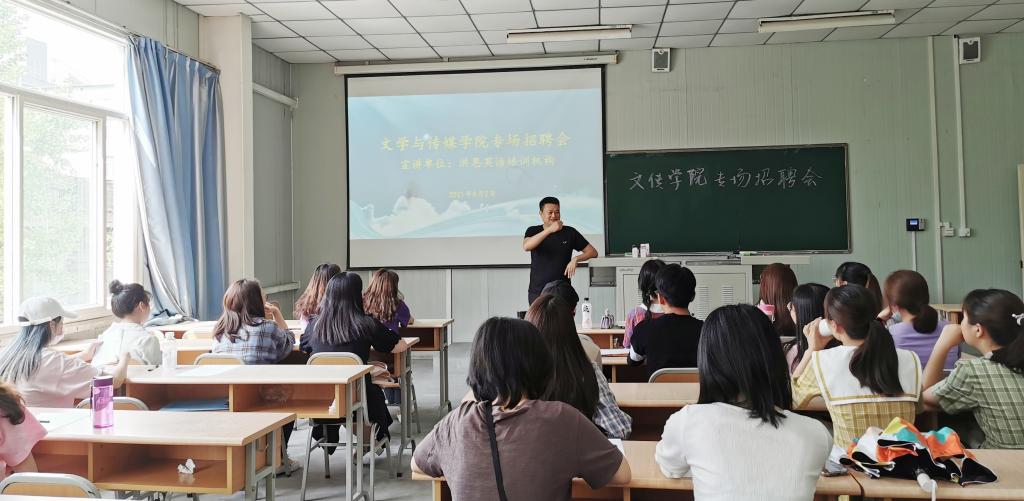 为切实做好毕业生就业工作,构建毕业生与用人单位的交流平台,提高滚球买球官网毕业生就业率,6月2日下午16:00,滚球买球的app官网邀请洪恩英语培训机构来滚球买球官网举办2021届毕业生校园专场招聘会,滚球买球的app官网毕业生辅导员彭潇及在校的40余名毕业生参加了此次招聘会。