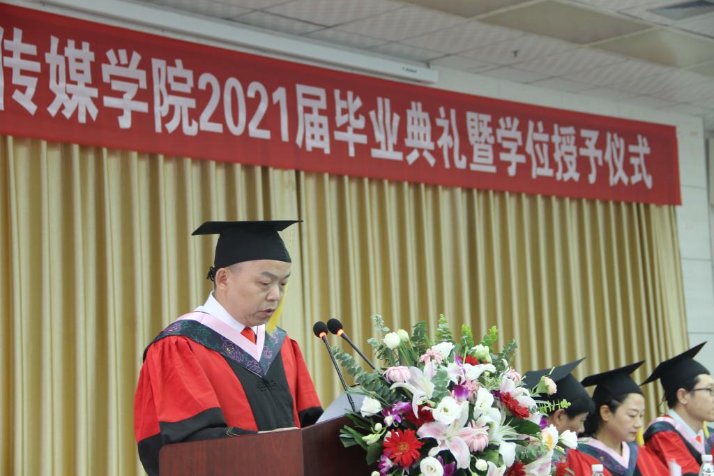2017级网络与新媒体专业毕业生姚兰作为毕业生代表发言,她谈起自己大学生活学习的点点滴滴,表达了对师长、亲人、同学的感恩之情,表示将带着文传学子自信、向上、奋斗的精神风貌,以实际行动践行“笃学、尚行、砺志、创新”的校训,承载起青年一代的使命担当。