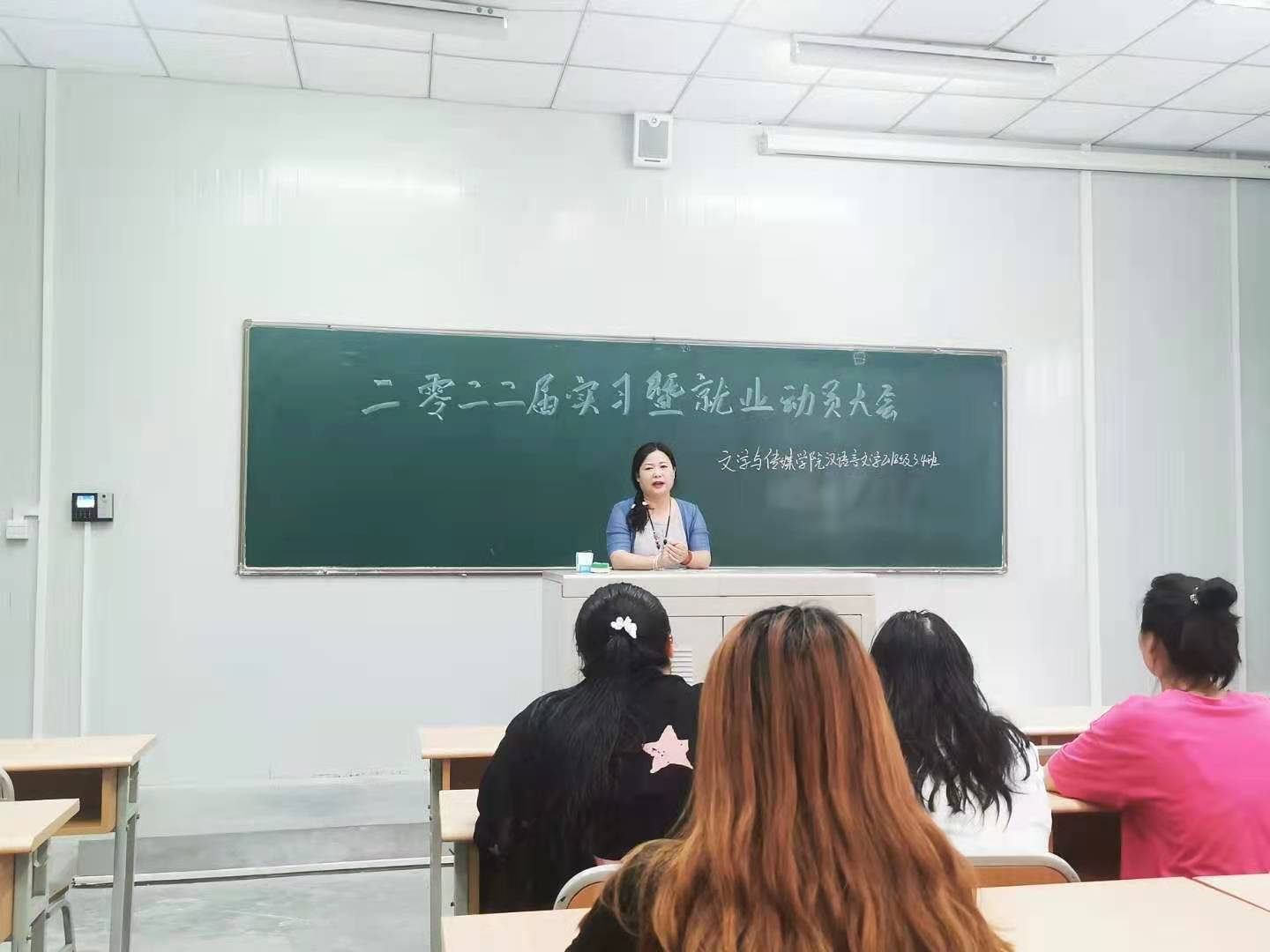 2021年9月7日下午,滚球买球的app官网组织召开汉语言文学专业2022届学生实习就业动员会。院党总支副书记杨海蓉参会,辅导员艾全霞主持会议。