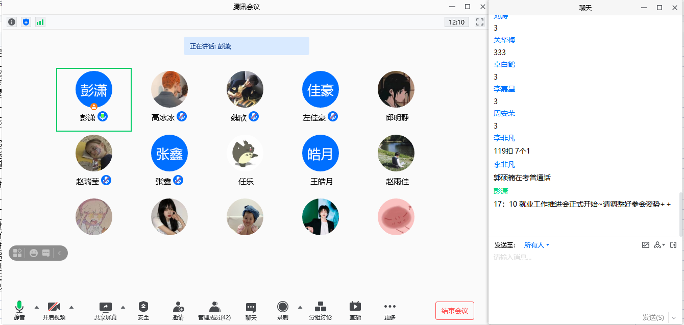 会议开始,彭潇带着学生回顾了在校的近4年时光,从时间的紧迫性入手,强调了学业规划、就业规划的重要性。她依据毕业生就业意向调研结果,对拥有不同就业目标的学生群体进行了针对性的教育引导和答疑,重点解释了同学们普遍关心的“应届生资格”“三方协议”“正式录用”“24365智慧就业平台”“云就业系统”等问题,并对同学们实习、就业的积极性和主动性给予了表扬,表达了对同学们就业、考研等方面的期许。