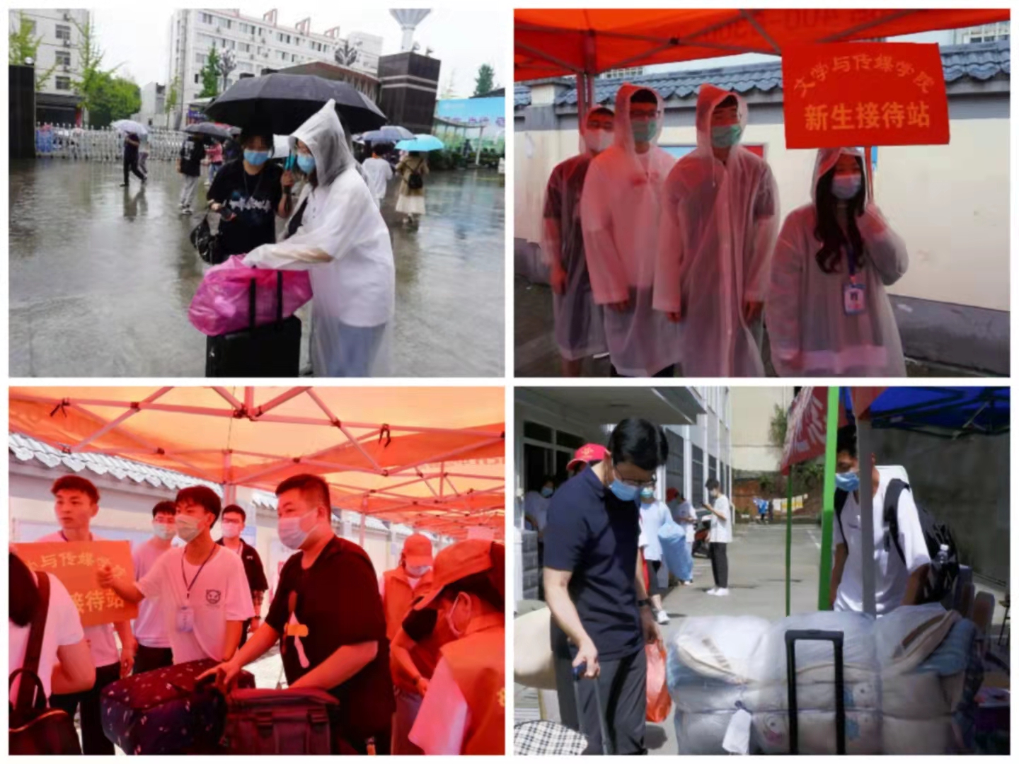 由于疫情防控的特殊原因,家长不能陪同进校,学院安排200余名志愿者全程协助新生搬运行李,顺利完成报到、入住手续。虽然天公不作美,但大雨浇灭不了我们的热情,困难阻挡不了迎新的步伐。所有志愿者不惧风雨、不辞辛苦一趟又一趟的帮助新生搬运行李,志愿者每日的行走步数都是30000+。信息核验、签到指引、物品发放,工作人员有条不紊的接待每一位前来报到的新生,整个迎新过程中,各个岗位的工作人员各司其职、团结协作,从现场报到、宿舍入住、后勤保障等方面落实了迎新工作,让新生家长放心的同时也极大地为新同学们提供了便利。