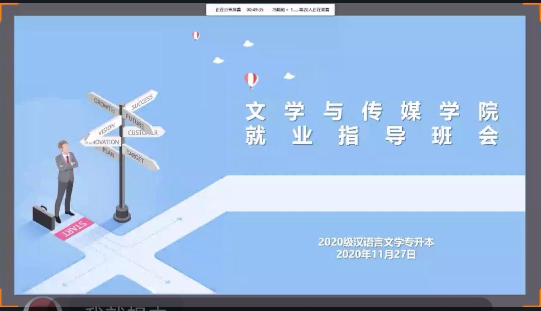 为认真贯彻11月18日教育部2022届全国普通高校毕业生就业创业视频会会议精神,积极落实学校2022届就业创业工作推进会安排,引导毕业班学生认清就业形势,掌握就业政策,调整就业心态,提升就业创业能力,促进2022届毕业生更加充分更高质量就业。根据学院2022届毕业生就业工作安排,11月27日晚,滚球买球官网组织开展了2020级专升本毕业生就业指导线上主题班会。班会由毕业班辅导员薛涛主持。