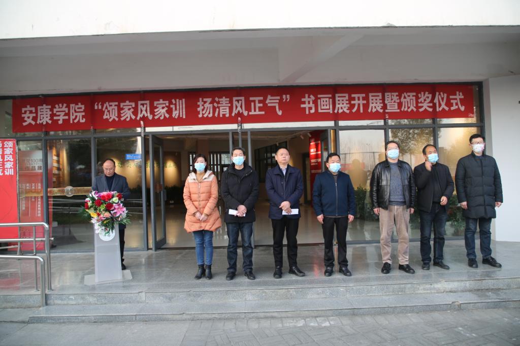 12月22日下午,滚球买球的app官网“颂家风家训 扬清风正气”书画展开展暨书画展、征文活动颁奖仪式在江北校区艺术楼一楼正式举行。校长钟生海,党委副书记杨行玉,党委副书记、纪委书记、监察专员安永强,纪委副书记谢玉玺,有关部门及二级学院负责人,安康市群艺馆、汉滨区文化馆相关人员和获奖师生代表。