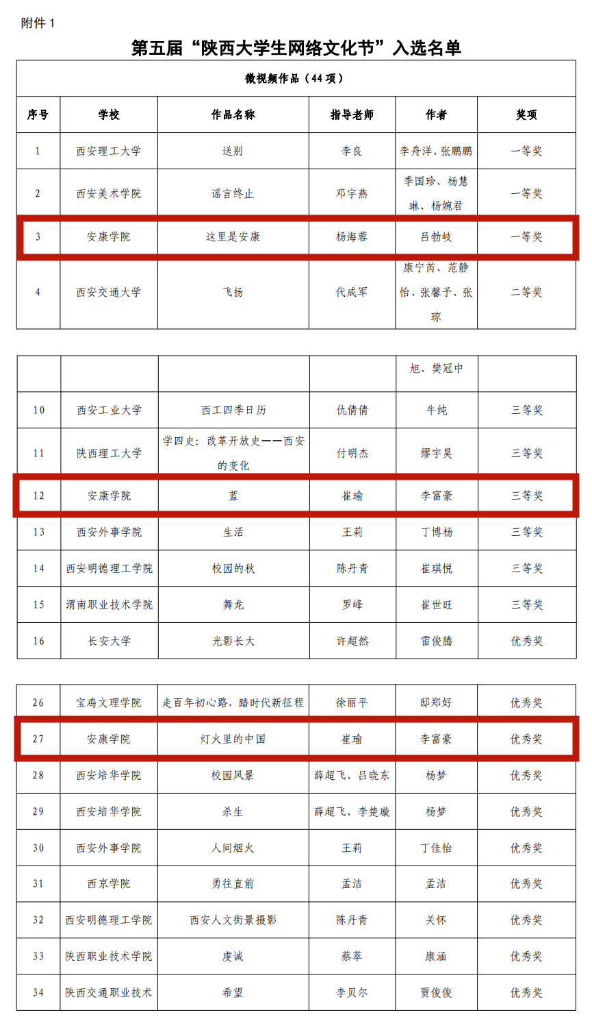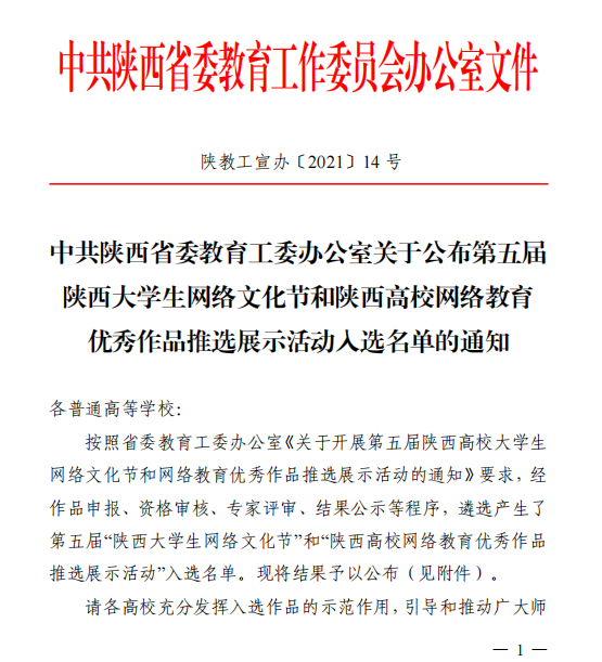 日前,由陕西省委教育工委办公室组织的第五届“陕西大学生网络文化节”评选结果落幕,经作品申报、资格审核、专家评审、结果公示等程序,遴选产生了第五届“陕西大学生网络文化节”和“陕西高校网络教育优秀作品推选展示活动”入选名单。滚球买球的app官网网络与新媒体专业2017级学生吕勃岐微视频《这里是安康》荣获微视频类一等奖,李富豪摄影作品《蓝》、《灯火里的中国》分别获摄影作品类三等奖和优秀奖。