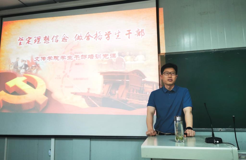 芦书记以“坚定理想信念 做合格学生干部”为主题,从个人理想信念与家国命运的联系、百年党史中的青年英雄事迹、中国共产党成立的伟大意义、学习党史的意义等方面为与会学生干部讲授了党课。