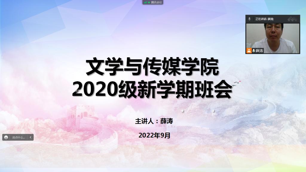 2020级辅导员辅导员薛涛分别从新学期大家状态调整、疫情防控、防范电信诈骗、文明上网等方面进行宣传引导,对《滚球买球的app官网“中学语文卓越师资班”人才培养计划行动方案(试行)》文件进行解读,解答教师资格证报名考试相关问题,并就线上教学向全体同学提出纪律要求。