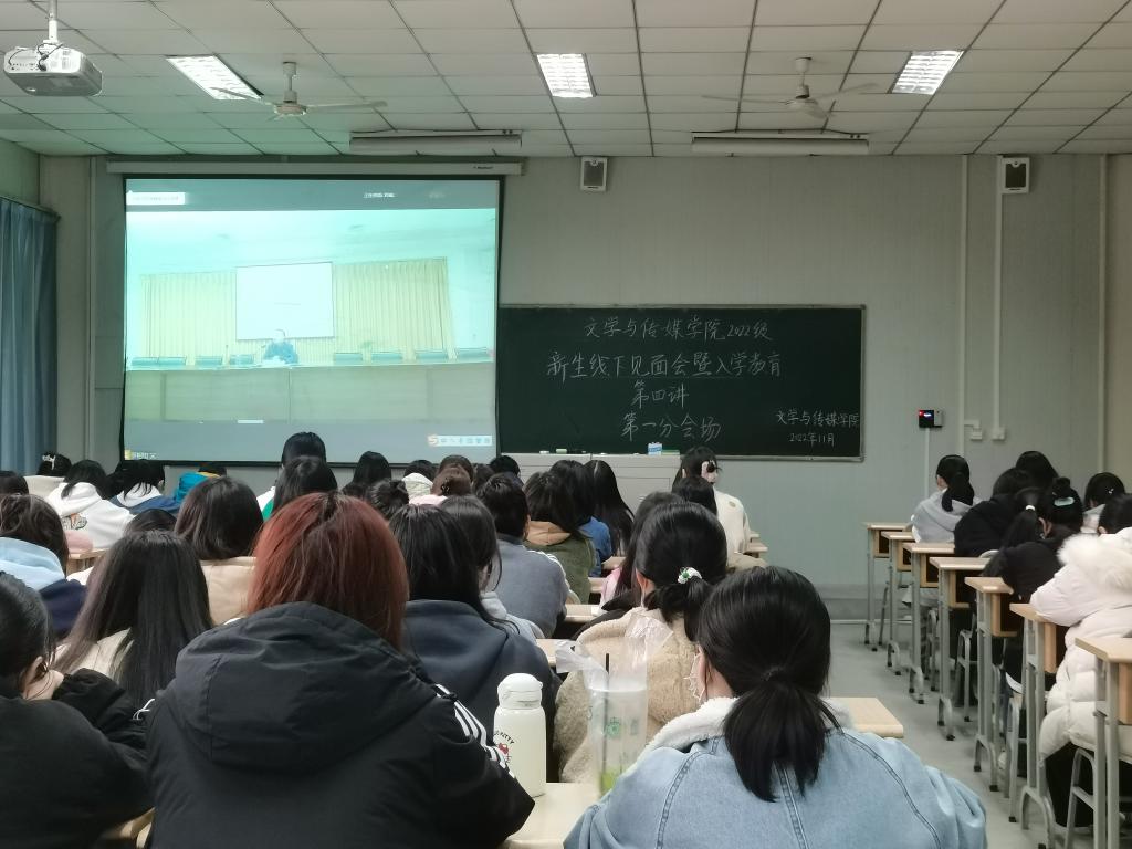 2022年11月16日下午,滚球买球的app官网在图书馆6楼报告厅隆重举行2022级新生见面会及入学教育第四讲。因为疫情,见面会采用线上与线下结合的方式进行,设置一个线下主会场、两个线上分会场。滚球买球的app官网领导班子、系主任、两办主任、新生辅导员及全体2022级新同学分别以线上线下的形式参会。见面会由滚球买球的app官网党总支副书记杨海蓉主持。