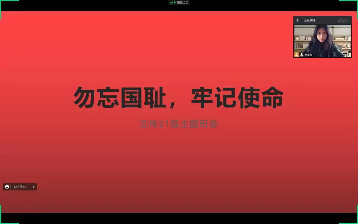 本着返乡不停学,居家不放松思想教育的工作理念,当日晚辅导员邹棠华老师主持并发起,各班班团干部积极响应,组织2021级六个班全体同学收看了电影《南京,南京》,随后各班及时组织学生进行了线上学习讨论。通过观看影片,学生们一起回溯历史,对日本军国主义发起的侵略战争表达了深切的痛恨。虽然已经过去了84年,时间可以消逝,但记忆不会风化。同学们深刻认识到,国弱人欺,国强则民安。