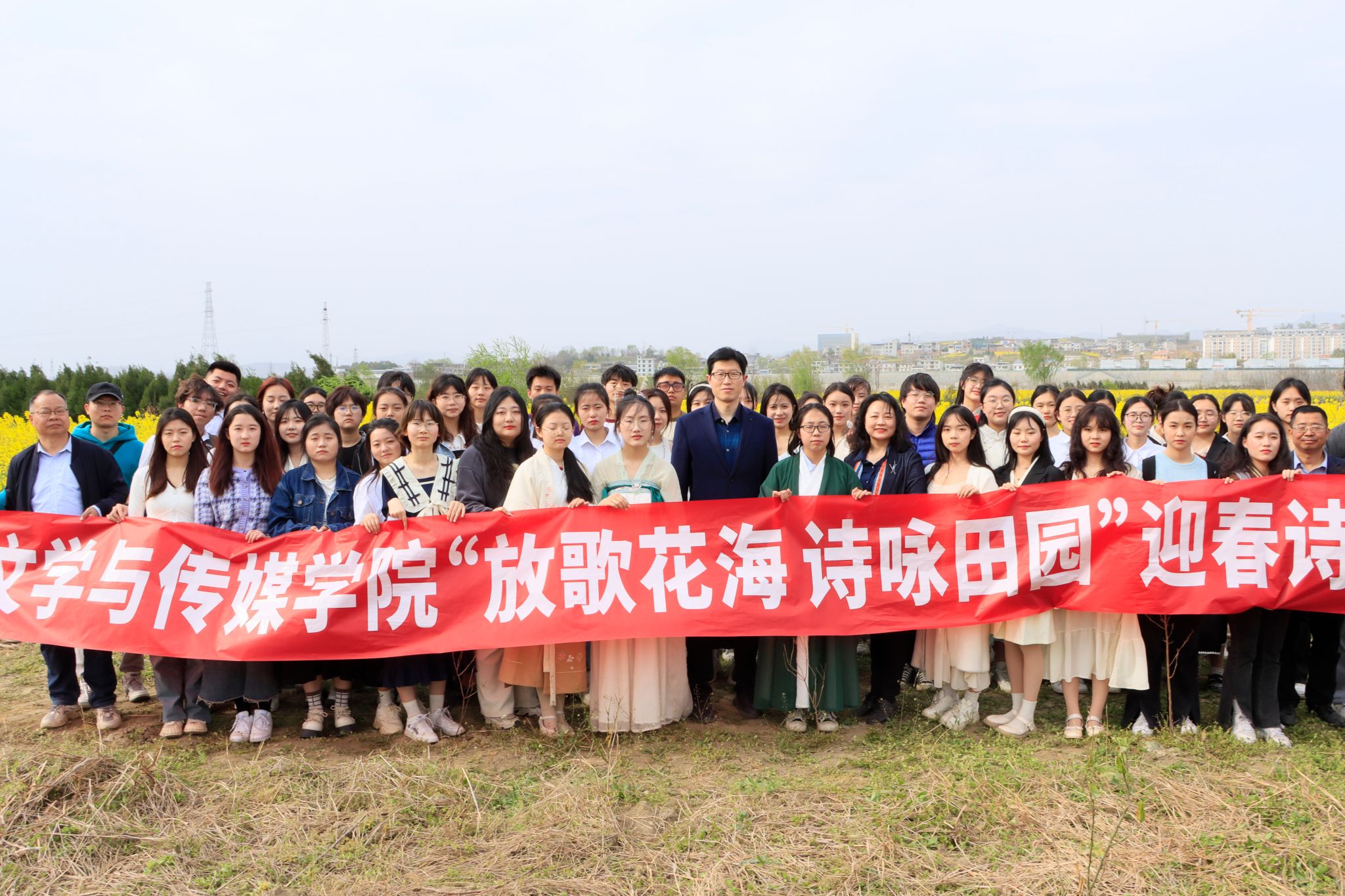 3月15日下午,滚球买球的app官网在张滩镇黄洋河畔油菜花田顺利举办了2023年迎春诗会。学院党总支书记芦伟、副书记杨海蓉、郑继猛教授和安日辉、曹璇璇两名青年教师出席了本次活动。活动由辅导员邹棠华组织,影视戏剧社承办,滚球买球的app官网近70名学生参加了本次诗会。