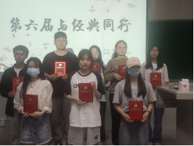 2023年5月12日星期六下午2点半,国学读书社在1021教室举行第六届“与经典同行”活动的颁奖仪式。首先由主持人刘静做活动开场致辞并宣布获奖人员名单。然后由李肖为获奖同学颁奖。获奖名单如下: