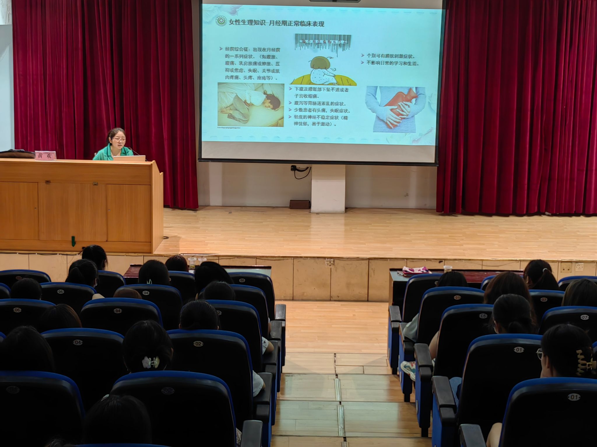 黄欢围绕医疗机构选择、乳腺疾病预防、女性生理知识、青春期门诊、PAC关爱、HPV预防等六个部分的内容为同学们做了专业知识分享。她结合工作接触中的病例,针对部分妇科常见问题为大家提供了科学的鉴别方法和解决途径,提醒大家注重女性身心健康,趁早预防妇科疾病,关爱健康关爱自身。倡导女生养成良好的生活习惯和健康的饮食习惯,做好自我管理,定期体检,发现问题及时治疗,树立“预防为主,治疗为辅”的健康理念。