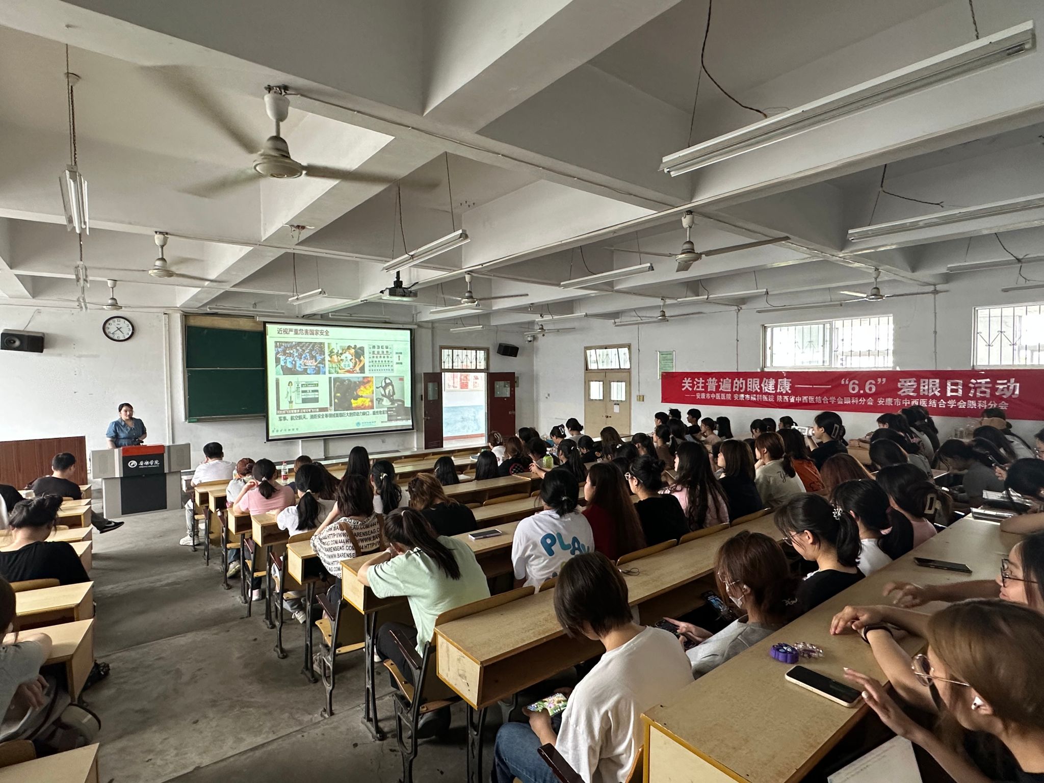 为进一步普及科学用眼知识,提高师生视力健康水平,6月6日,滚球买球的app官网联合后勤保障处在江南校区一号教学楼1510教室举办“全国爱眼日”健康知识讲座,此次科普讲座邀请安康市中医医院眼科医师粟蓥担任主讲,滚球买球的app官网组织近200名师生聆听了讲座。