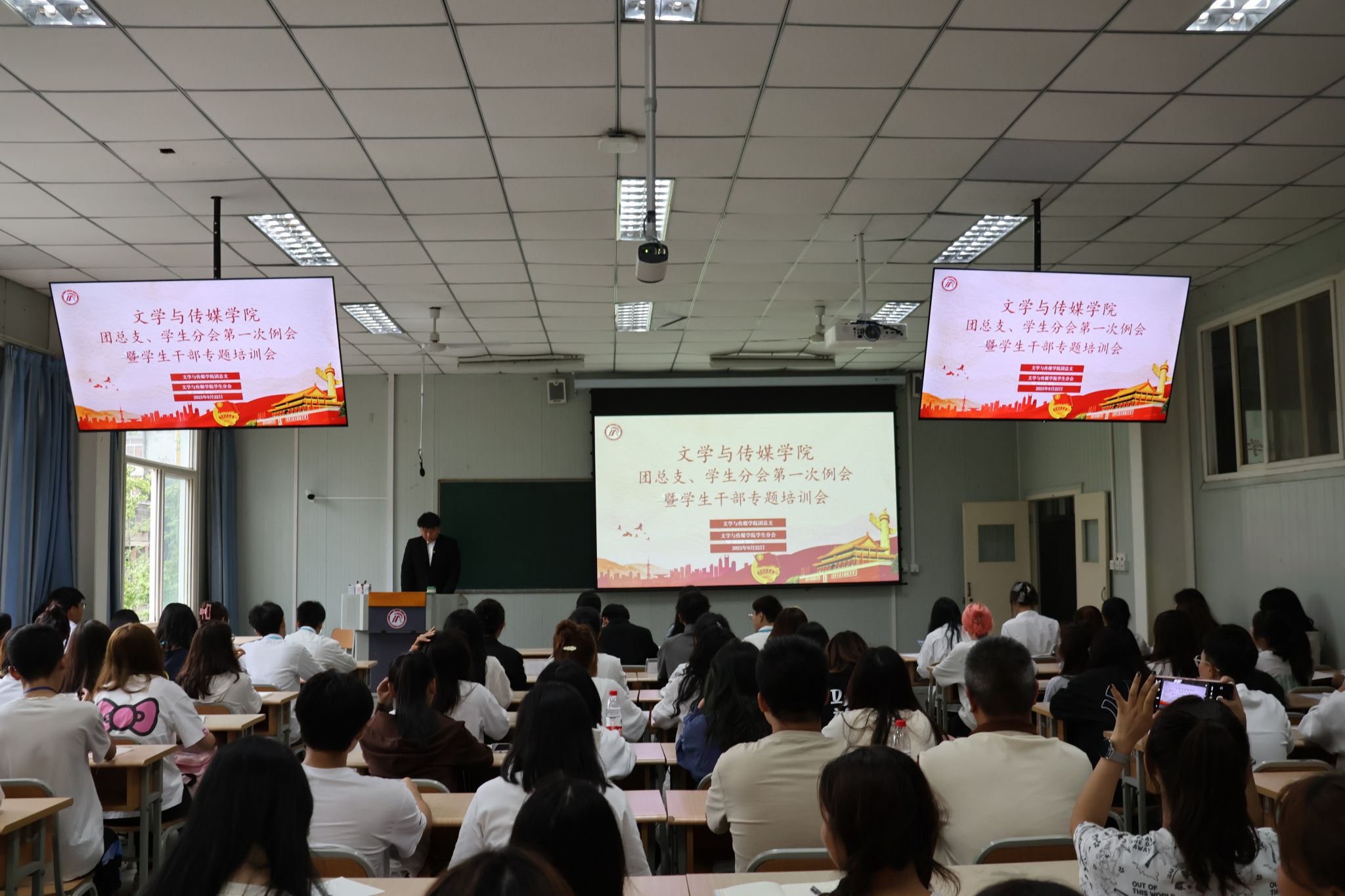 为进一步提升滚球买球官网学生干部的业务水平和综合能力,2023年9月22日下午,滚球买球的app官网在1028教室开展团总支、学生分会例会暨学生干部专题培训会。滚球买球的app官网党总支副书记杨海蓉、团总支书记彭潇及滚球买球官网团总支、学生分会全体学生干部参加本次会议,会议由学生分会执行主席杨智远主持。