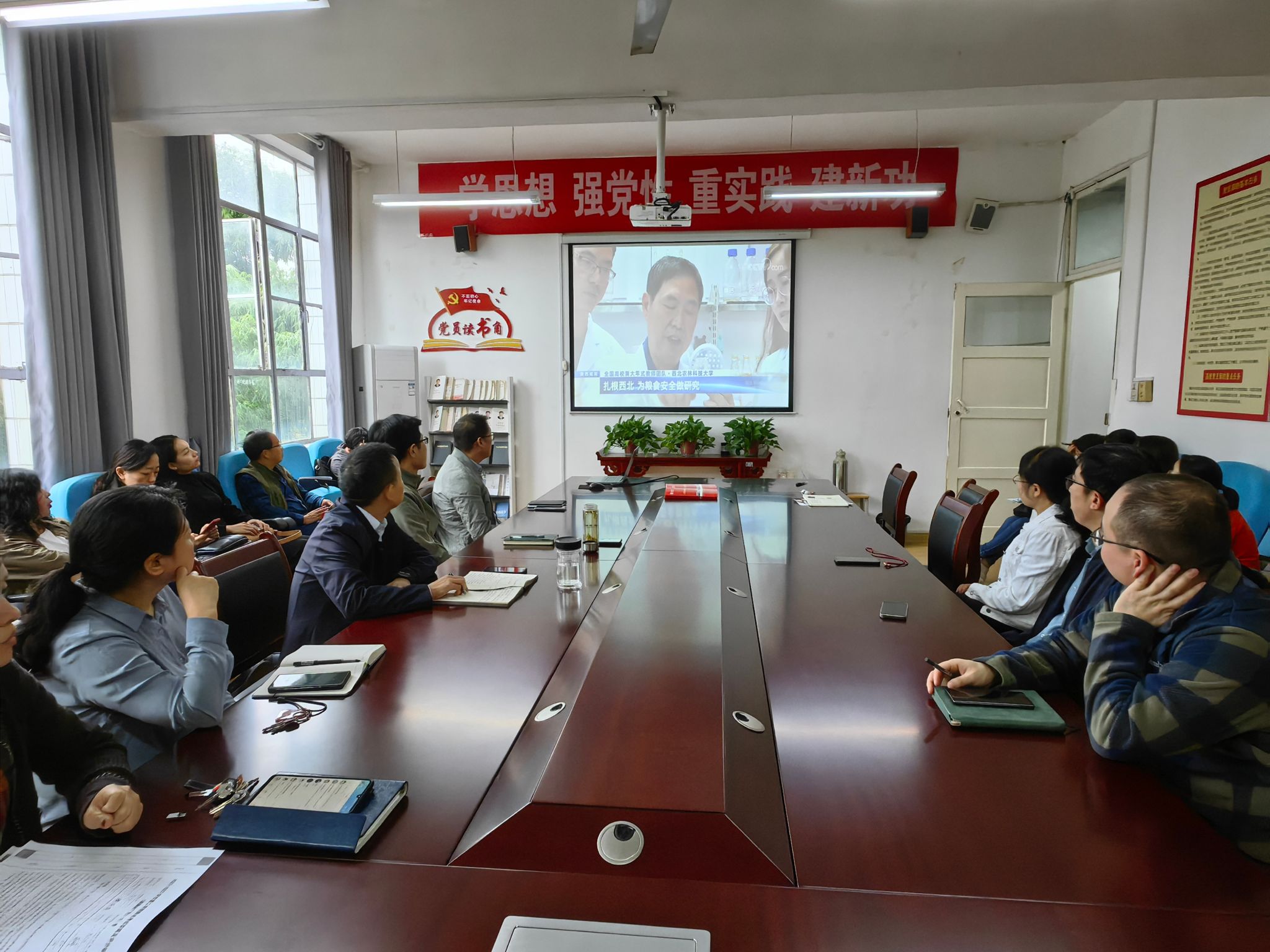 会议组织教师们共同观看学习了《全国高校黄大年式教师团队:西北农林科技大学植物病虫害治理教师团队》和《功勋闪耀:李宏塔——家风传初心》师德师风及家风主题视频。
