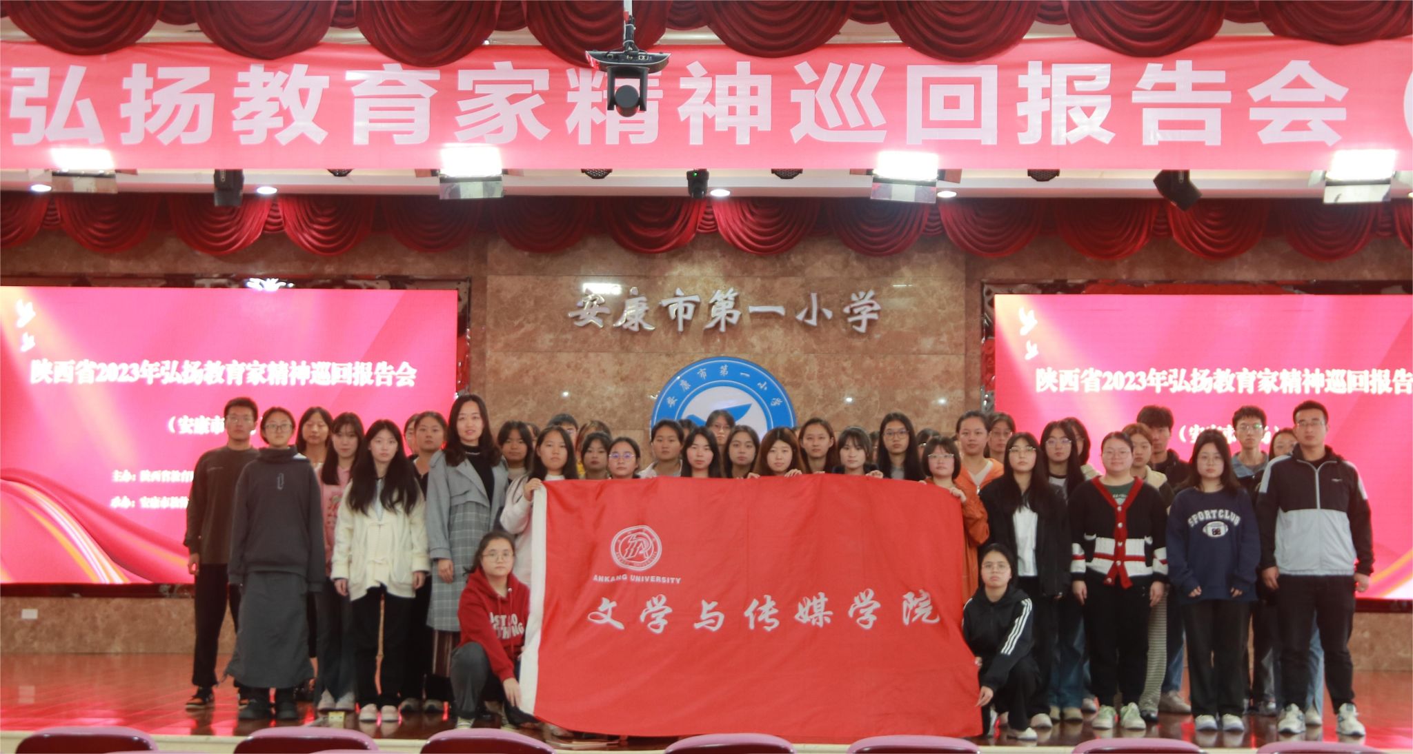 为大力弘扬教育家精神,引导青年学生树立“躬耕教坛、强国有我”的志向和抱负,2023年11月4日上午,滚球买球的app官网组织学生前往安康市第一小学多功能报告厅,参加陕西省2023年弘扬教育家精神巡回报告会(安康站),开展“引领思想旗帜 铸就坚强核心”主题教育活动。滚球买球的app官网团总支书记彭潇、辅导员许明和滚球买球官网部分师范生参与了此次活动。