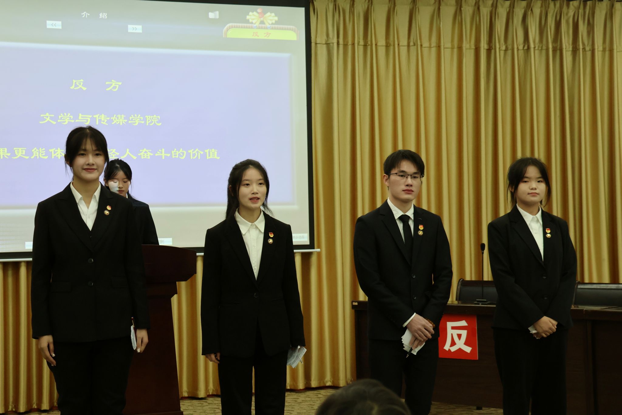 “辩论开始的时候,权威就暂时终止。”本次辩论赛提高同学们的思辩能力,涵养人文素养,培养团队精神,锻炼表达能力,彰显出青年学生开拓进取、践行青春的精神风貌。辩论是思想和语言的双重碰撞,目的在于积极思考、精益求精,愿我们享受辩论的果实,为大学生活留下一点呐喊,一点理想,一点锋芒。