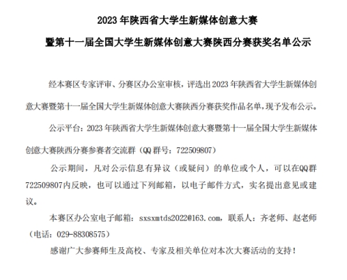 2023年11月20日,陕西省大学生新媒体创意大赛暨第十一届全国大学生新媒体创意大赛陕西分赛获奖名单公示,滚球买球的app官网滚球买球的app官网短视频作品喜获佳绩!
