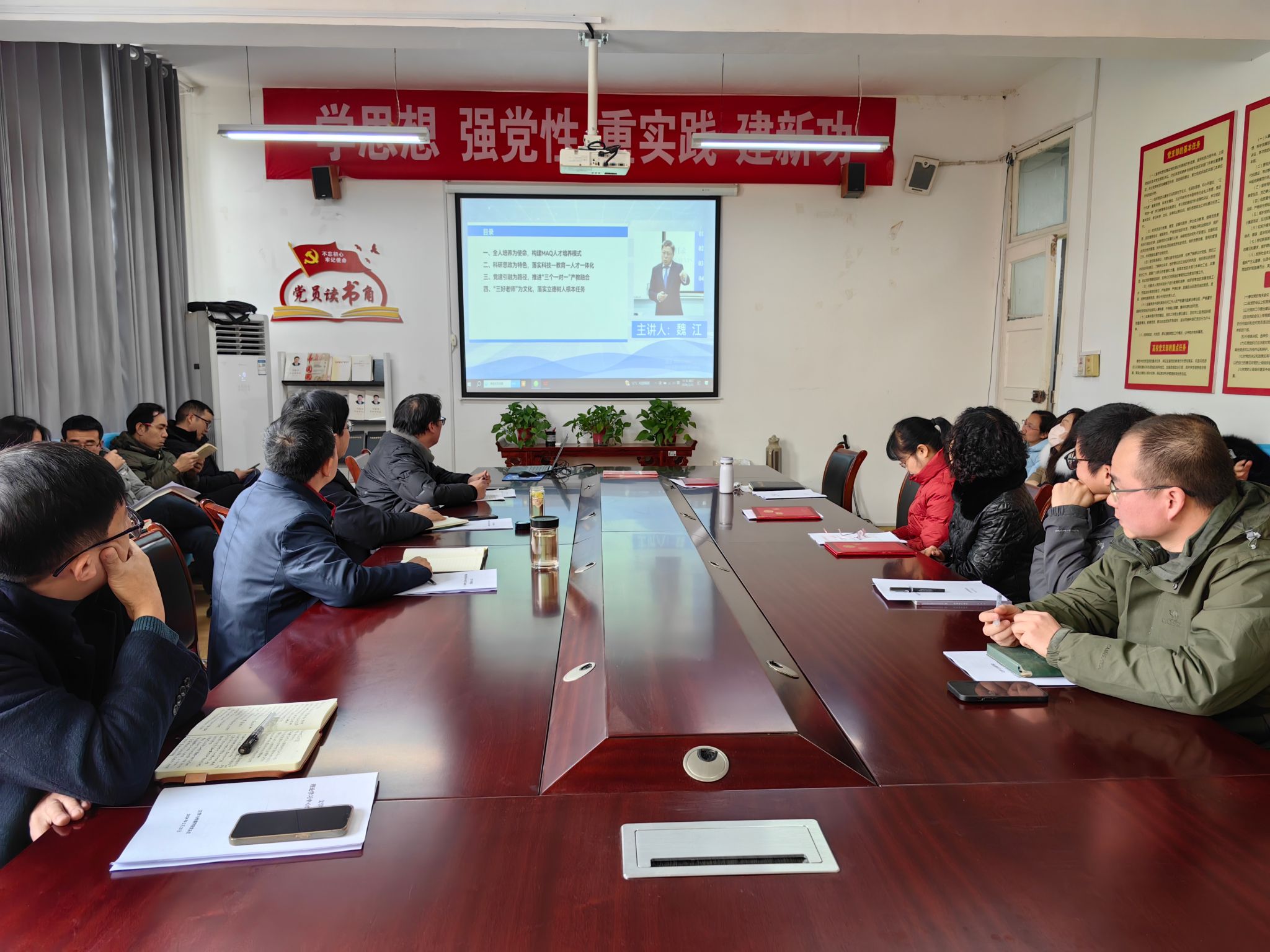 最后,组织全体教师集体学习了浙江财经大学党委副书记、副校长魏江教授主讲的“科研思政 党建引融,培养心怀‘国之大者’”的两型人才”专题报告。杨运庚强调,全体教师要进一步加强理论学习,大力弘扬教育家精神,坚持自我教育,坚守课堂主阵地,厚植教育情怀,牢记为党育人、为国育才的初心和使命,树立“躬耕教坛、强国有我”的志向和抱负,以饱满的精神状态投入到新学期的各项工作中。