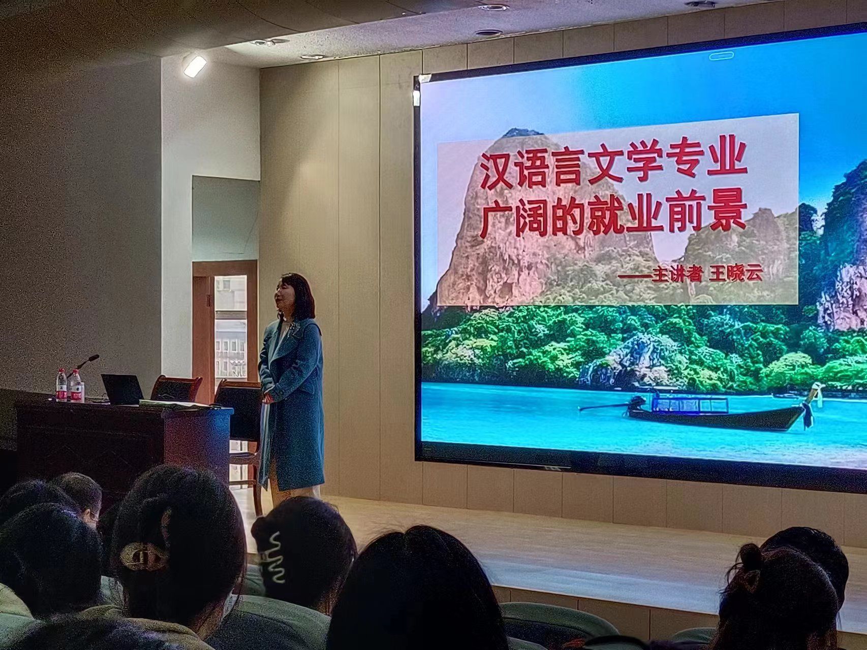3月8日,陕西省青年文学协会副主席、著名作家王晓云老师在江南校区一号教学楼报告厅为汉语言文学专业2021级全体学生做了题为“汉语言文学专业广阔的就业前景”的讲座。讲座由系主任谭诗民主持,朱云副院长聆听了报告。王老师结合自身的职业经验,鼓励大家要将个人兴趣和专业特性结合起来进行职业选择。她告诫大家要从基层做起,在工作中汲取经验、谋求发展;要善于抓住各种机遇,敢于开拓创新,才能厚积薄发。她希望同学们无论何时何地都要保持良好心态、快乐生活。讲座中,王老师就同学们提出的对未来职业发展的困惑问题做了耐心解答。
