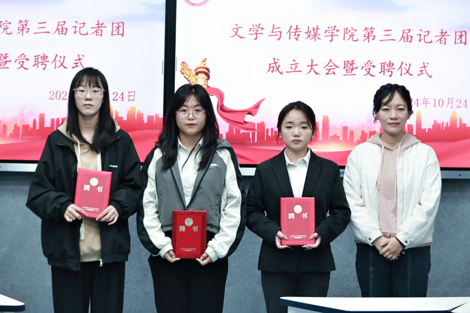 新一届主编肖瑶、副主编王一纯做就职演讲。她们表示,记者团将在新媒体人才专业能力提升上加大培训力度,注重团队成员综合素质的发展,继续围绕学院中心工作开展活动,客观、公正、及时地宣传报道学院要闻,共同为学院新闻宣传贡献力量。