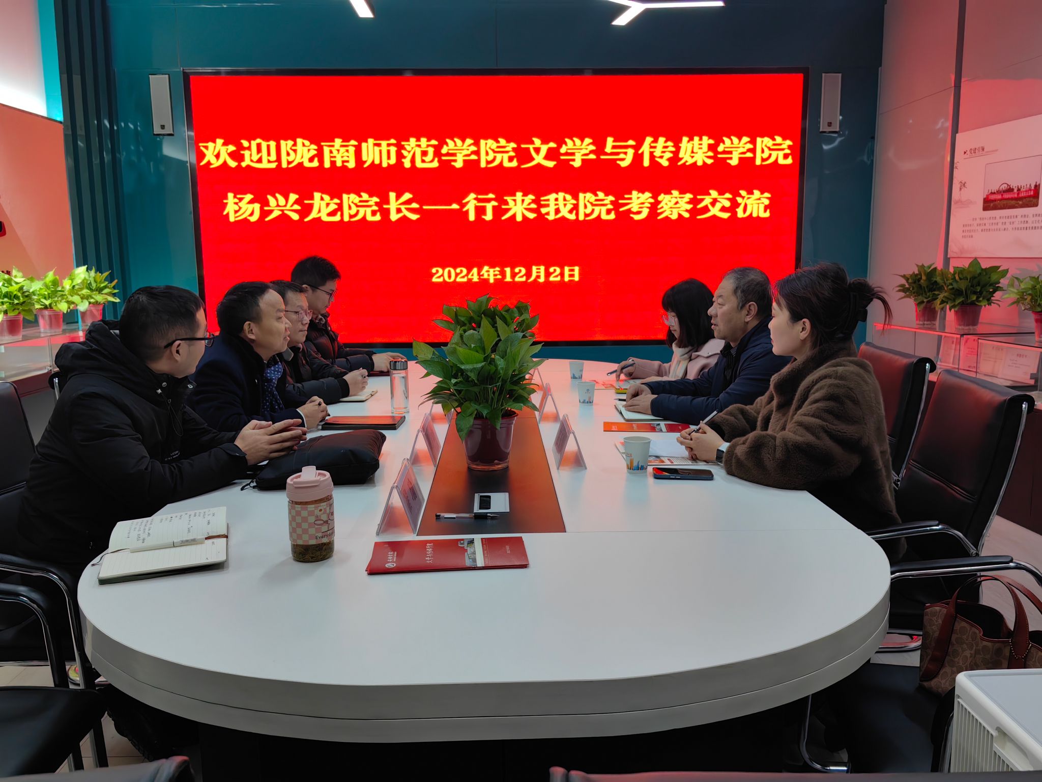 12月2日上午,陇南师范学院滚球买球的app官网杨兴龙院长一行3人来滚球买球官网考察交流,滚球买球的app官网院长杨运庚、副院长朱云、秘书学专业负责人胡少山、秘书与新媒体系主任张建涛、党政办主任崔瑜参加交流座谈。