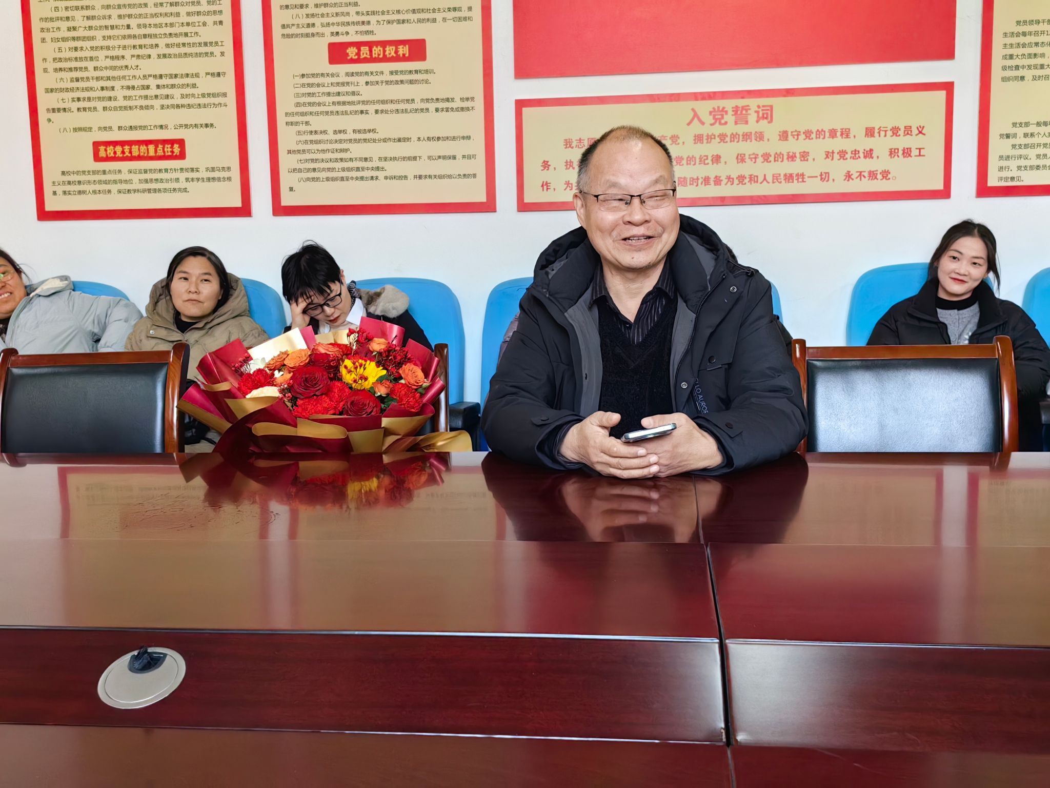 随后,黄治强代表学院工会分会给郑继猛教授送上了祝福的鲜花,郑继猛教授发表了荣休感言。他追忆了早年不断求学和入职滚球买球官网以来的主要经历,对学校、学院多年以来的关怀和支持表示真诚的感谢,对在各个时期给予他帮助的老师们也分别表达了感谢。郑继猛教授还分享了自己的学术感悟和科研经验,鼓励在职教师要在潜心教书育人的同时结合自己的专业方向和学院发展所需加强科研工作。与会教师也纷纷畅谈与郑继猛教授在一起的美好时刻,并对其开启退休新生活送上了美好的祝福。