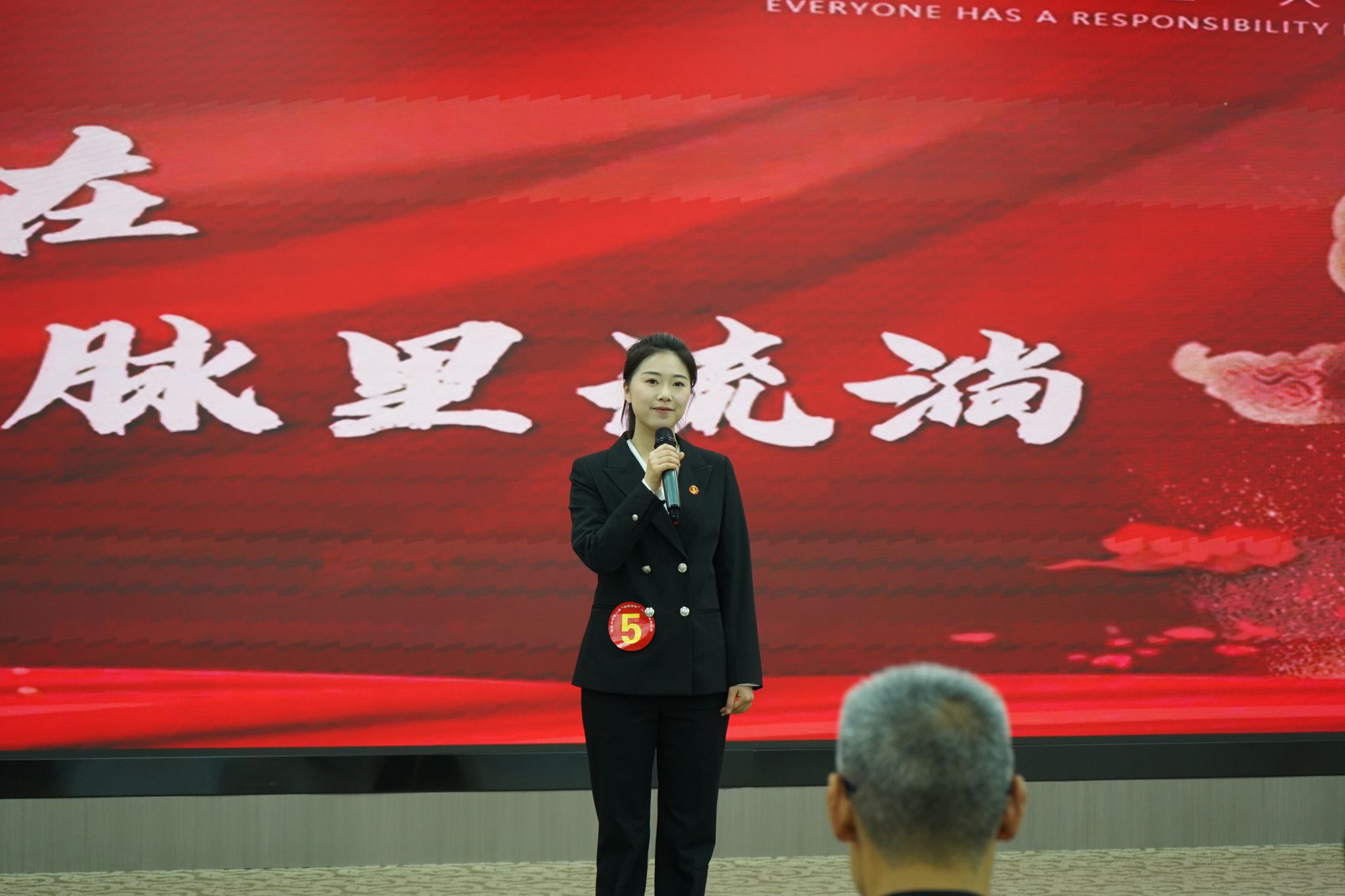 决赛现场,郑竣文以《丰碑在血脉里流淌》为题,通过三个维度的精彩讲述,抒发了新时代青年的国防担当。她首先以“红色基因的当代解码”开篇,用泛黄战备日志中机电长李明的感人故事,将国防情怀具象化;继而以“数字时代的国防叙事”为轴,巧妙结合我国万吨大驱下水、网络空间构筑数字长城等时事热点,生动展现国防建设成就;最后以“青春热血的使命应答”收束,发出“这盛世中华,有我们守护的丰碑永存”的时代强音, 最终以92.25分的优异成绩获得一等奖。