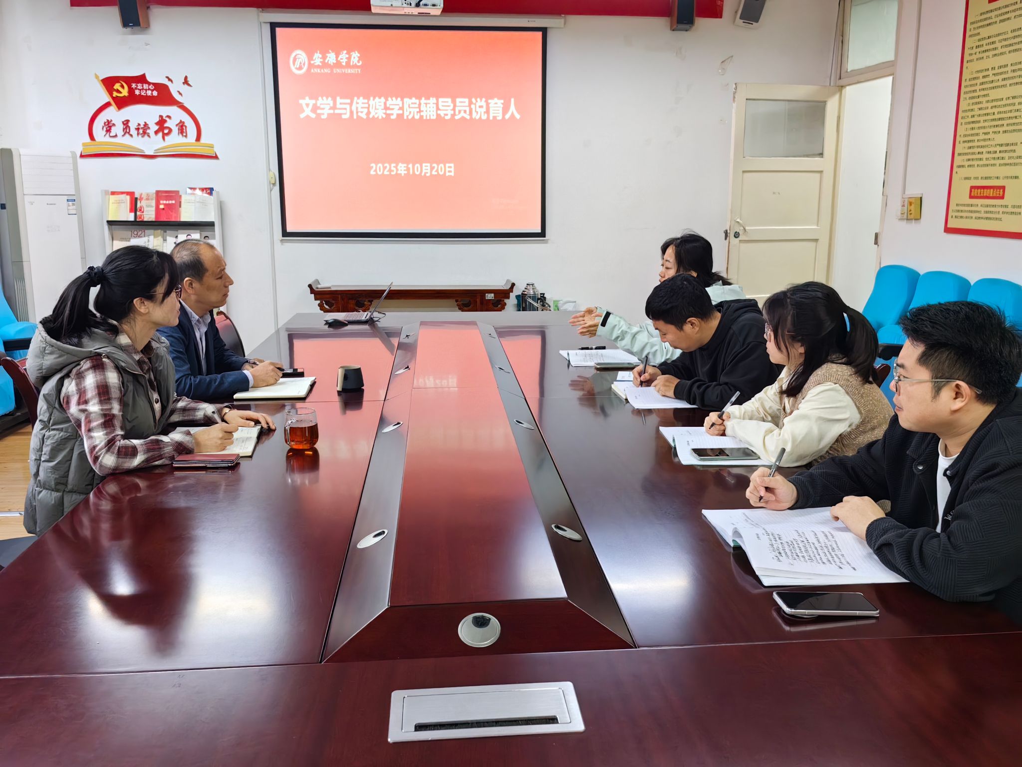 学工办主任薛涛围绕辅导员工作室建设、学生思想政治教育与日常管理等重点工作进行了系统汇报。团总支书记彭潇聚焦第二课堂育人功能,就学生社团管理、校园文化活动组织以及各类学科竞赛的统筹开展作了经验交流。刘言军老师结合学生党支部建设实际,从党支部规范化建设、党员发展与教育管理等方面介绍了经验做法。喻言老师结合工作实际,围绕新生入学教育和大学生心理健康教育等重点内容,分享了日常工作中积累的育人做法与体会。