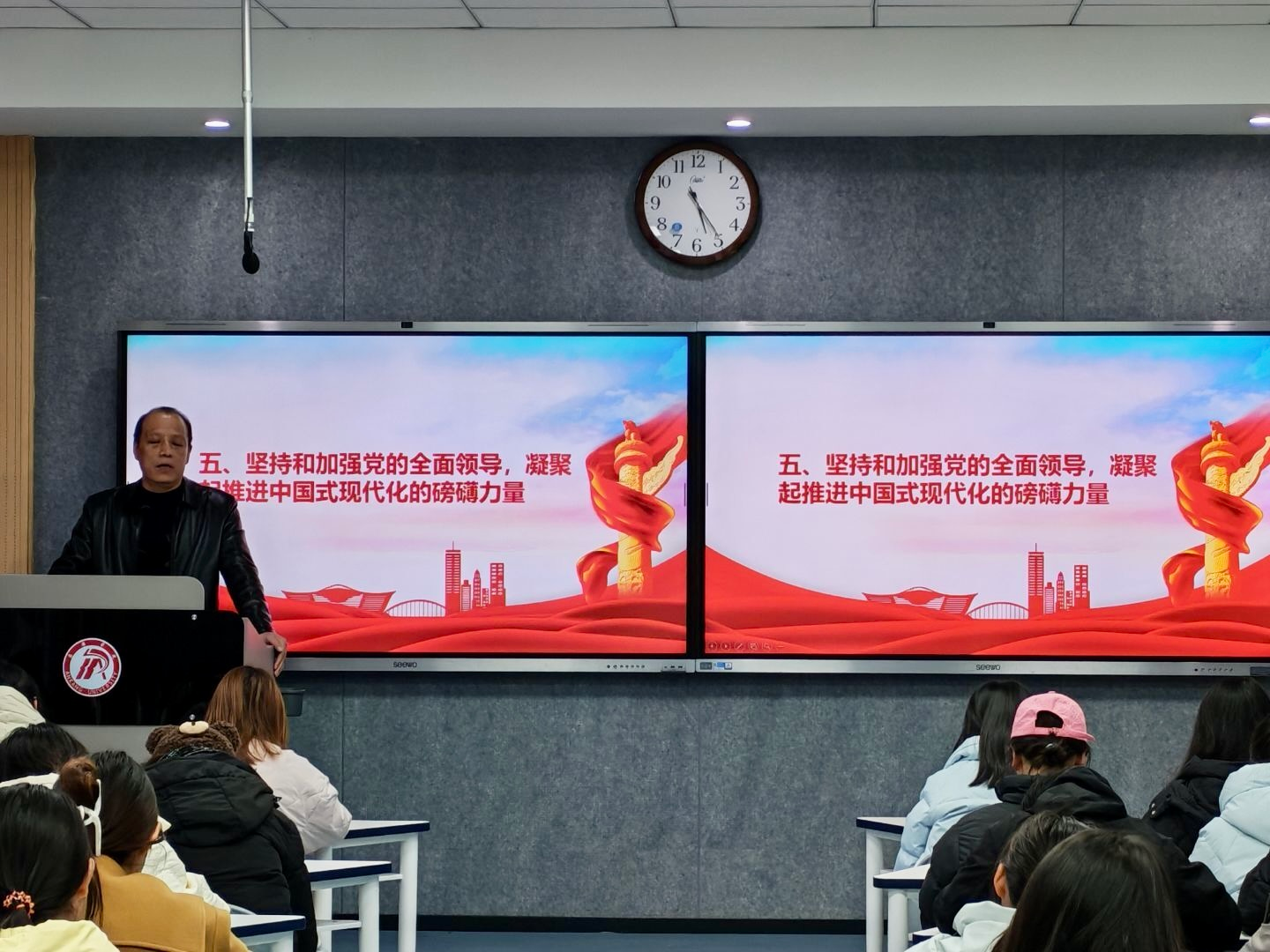 12月17日,为深入学习党的二十届四中全会精神,引导青年学子凝聚思想共识、汇聚行动力量,滚球买球的app官网组织开展“以青春赴时代之约,以奋斗践全会精神”主题团课。学生团干部及新发展团员齐聚一堂,共同学习领会全会内容与实践要求,本次团课由党总支书记任森龙主讲。