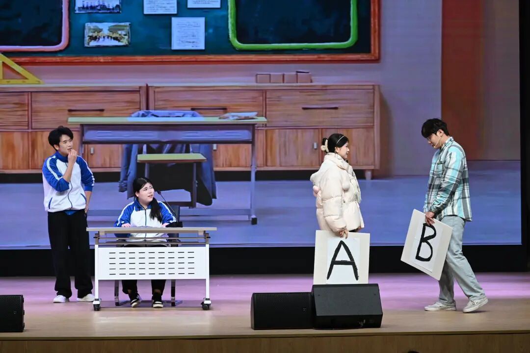 晚会节目形式多样、精彩纷呈。歌曲演绎情感真挚,将青春心绪娓娓道来;舞蹈表演风格多元,古典雅致的民族舞与动感十足的现代街舞轮番登场,柔美身段与力量迸发的碰撞惊艳全场;语言类节目聚焦校园生活,小品和相声用诙谐台词复刻成长趣事,引得现场笑声、掌声此起彼伏;武术等传统体育表演尽显刚柔并济之美,展现出中华文化的深厚底蕴与同学们昂扬向上的精神风貌。