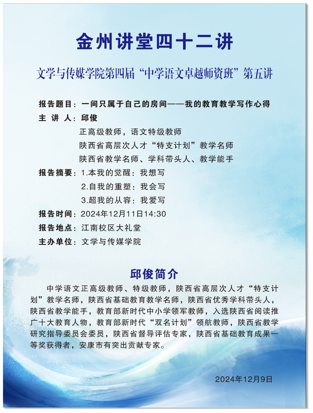 导航痕迹 首页 > 新闻通知 > 通知公告 > 正文 学院新闻 通知公告 金州讲堂四十二讲 主讲人:邱俊(陕西省高层次人才“特支计划”教学名师) 发布人:滚球买球的app官网 发布日期:2024年12月09日 阅读次数: