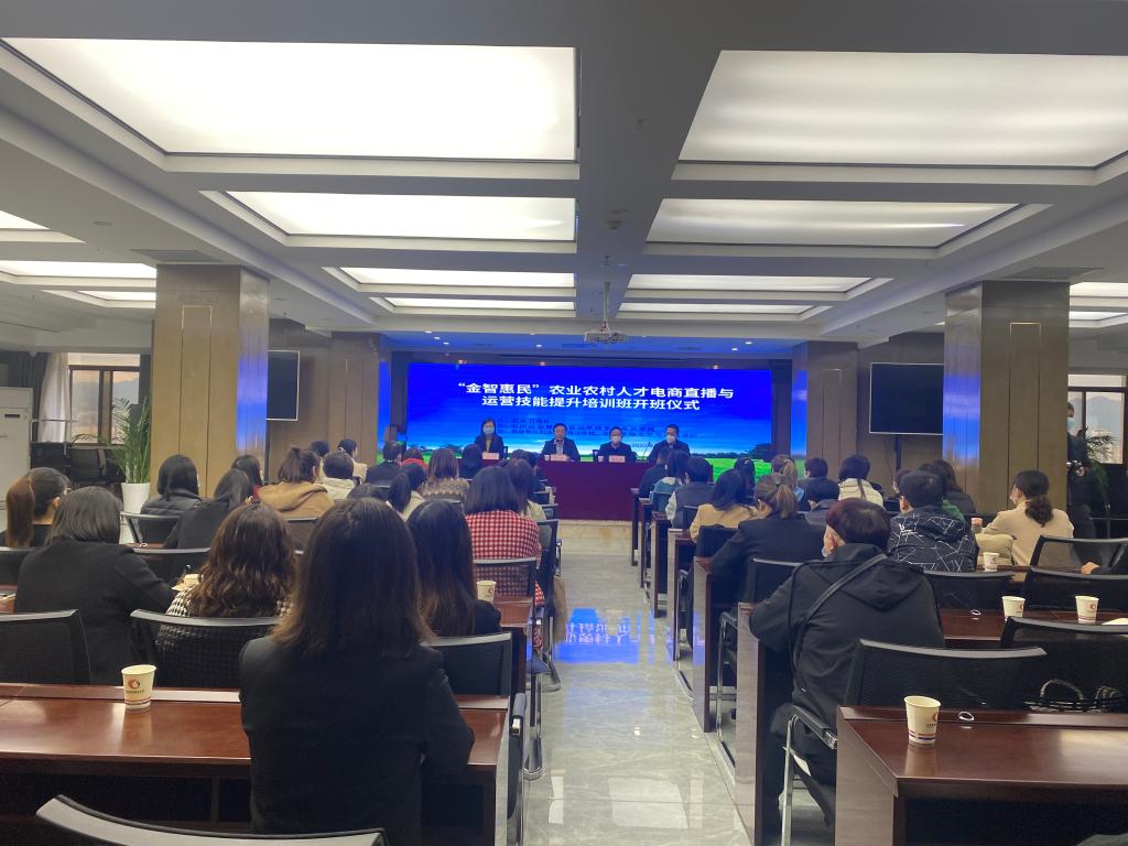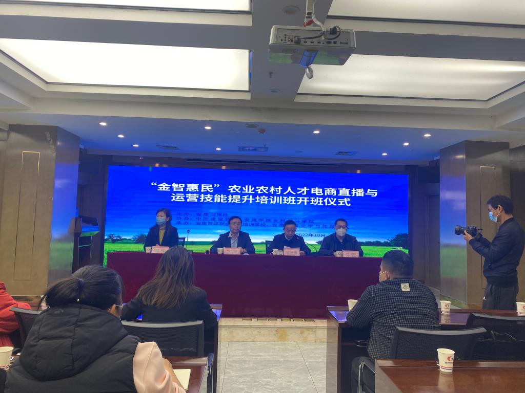 10月27日,由滚球买球官网乡村振兴学院、滚球买球的app官网与中国建设银行、安康日报社联合举办的“金智惠民”农业农村人才电商直播与运营技能提升培训班在安康景泰国际商务酒店会议室顺利举行。安康日报社社长王建,滚球买球官网滚球买球的app官网院长杨运庚、继续教育学院副院长韩涛出席了开班仪式。开班仪式由滚球买球的app官网副院长朱云主持。