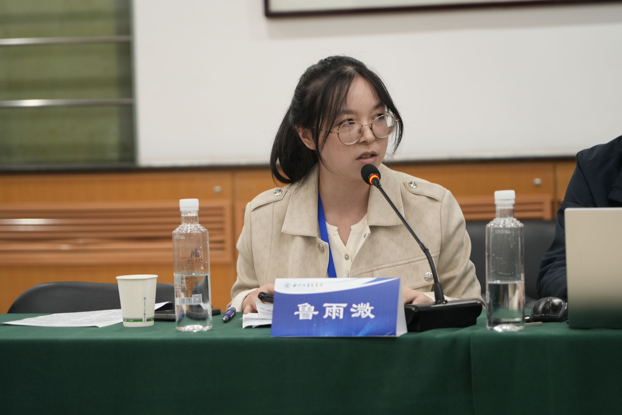 论坛同步分设三个分论坛,涵括“学科融合与跨媒介叙事”“AI的互文性与集体记忆书写”“AI的原创性与同质化比较研究”等核心议题。各分论坛现场,参会学者积极分享,深入交流,为数智时代创意写作的新形态、新可能和新问题提供了多元化、差异化的思路与方案。鲁雨溦老师参与第二分会场研讨,围绕“人机协同共创的创意写作教学观念转变与启发”进行发言。