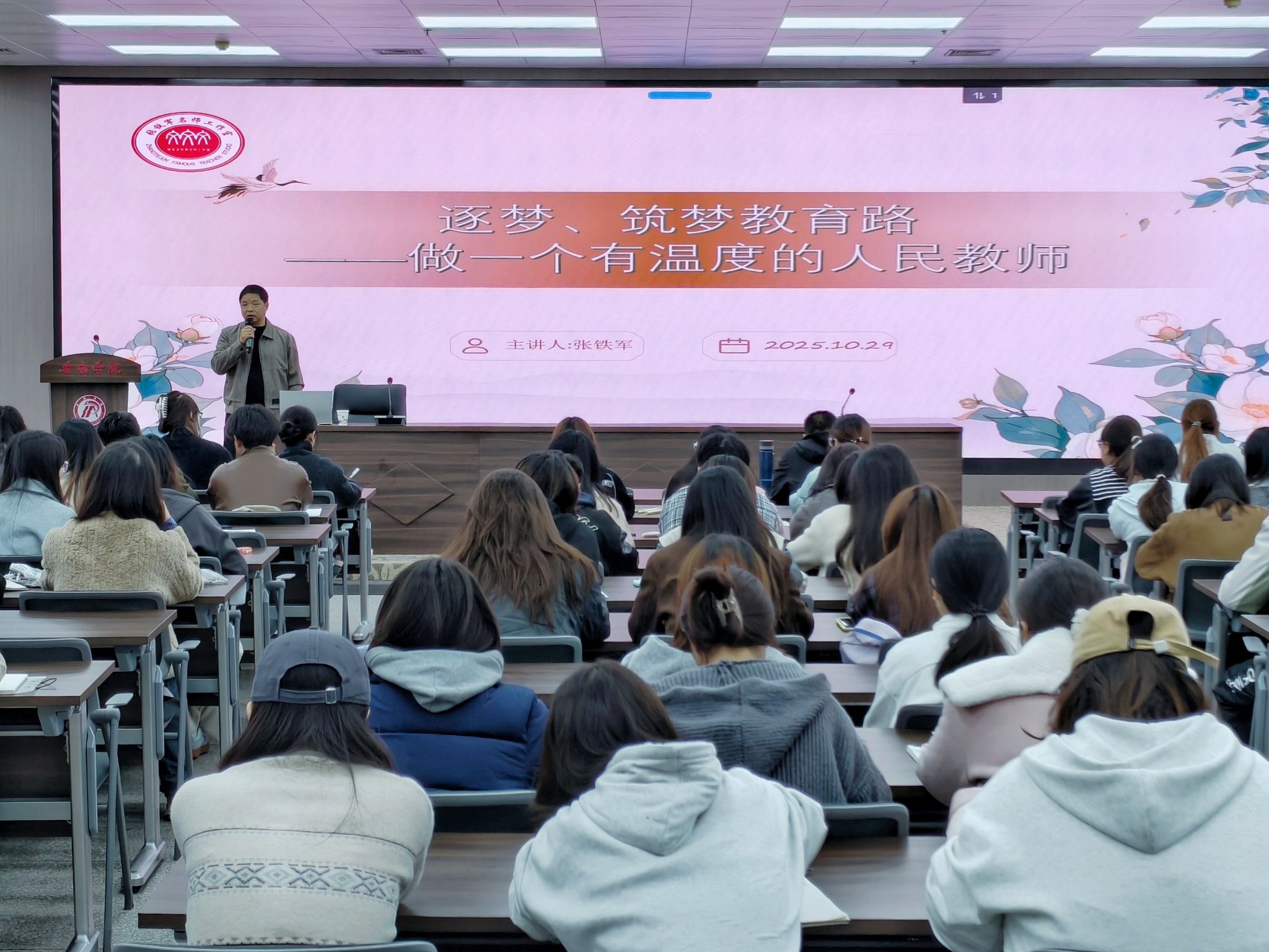 仪式结束后,陕西省教学名师张铁军老师做题为逐梦、筑梦教育路——做一个有温度的人民教师首场讲座