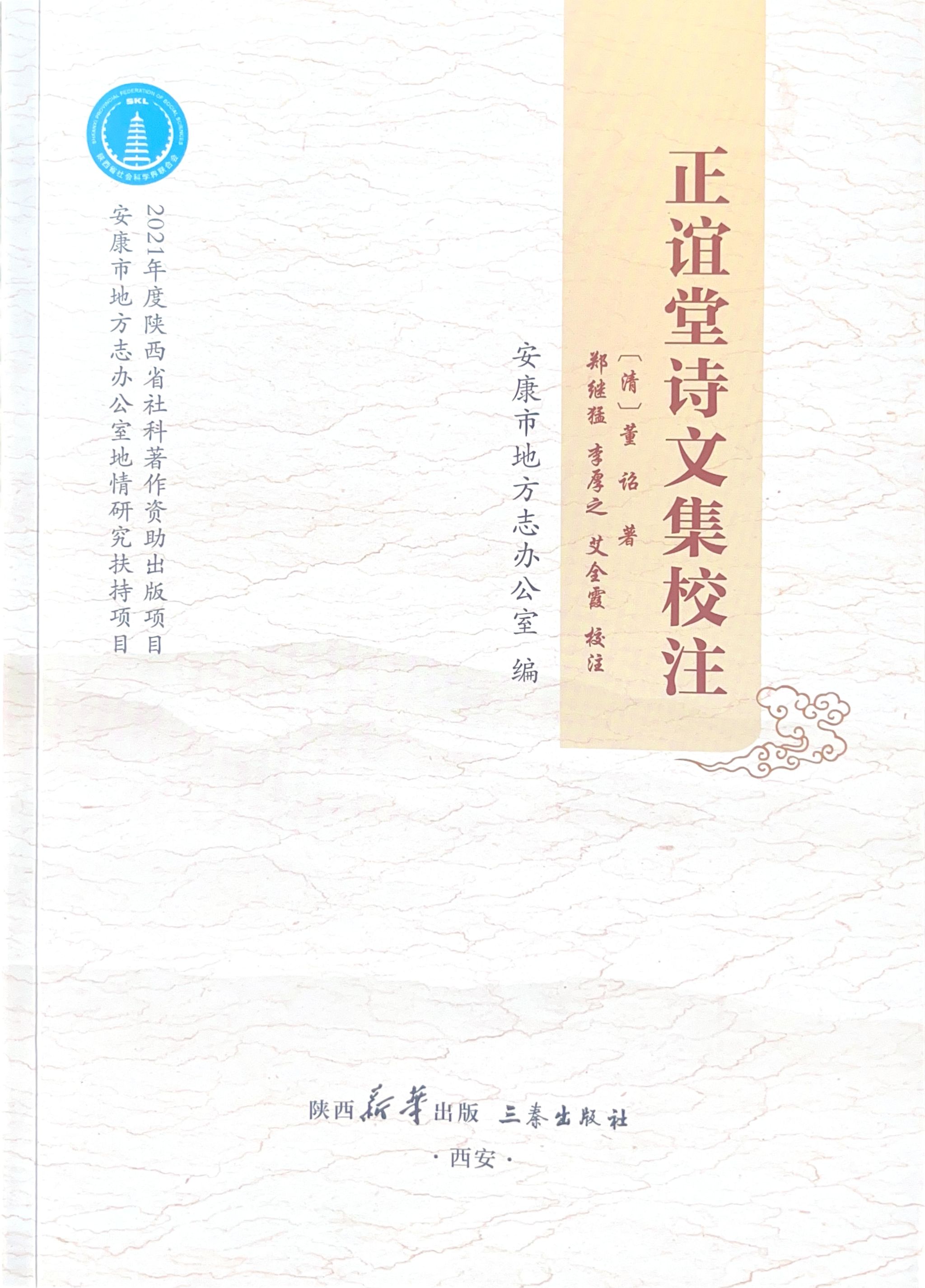 近日,滚球买球官网郑继猛教授主持校注的《正谊堂诗文集校注》由三秦出版社出版发行。该书以67万字的篇幅首次对清乾嘉时期安康著名教育家、文学家董诏的诗文集作品《正谊堂诗集》《正谊堂文集》做了精细整理、校勘、注释工作,是滚球买球官网地方古籍文献整理的又一项重要成果。