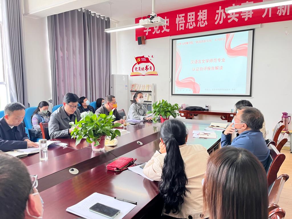 导航痕迹 首页 > 师范专业认证 > 活动新闻 > 正文 政策文件 活动新闻 师范生技能大赛 滚球买球的app官网组织“新高教新发展”系列解读第三讲“汉语言文学师范专业认证自评报告解读” 发布人:滚球买球的app官网 发布日期:2022年10月14日 阅读次数: 2022年10月13日,滚球买球的app官网“新高教新发展”系列解读第三讲开讲,副院长李婷为全院教师解读汉语言文学师范专业认证自评报告。 李婷首先对汉语言文学专业自评报告聚焦专业认证“质量保障,持续改进”的理念进行了介绍,其次按照自评报告“背景信息、毕业要求、课程与教学、合作与实践、师资队伍、支持条件、质量保障、学生发展”八个部分的写作结构依次对汉语言文学师范专业建设对标认证标准的达成情况、存在问题、持续改进思路和措施进行了重点解读。 自评报告是对汉语言文学专业建设情况的总结和思考,本次组织学习既是对专业认证自评报告撰写工作的阶段性总结,也有利于本院教师对汉语言文学专业有更加全面的了解,对师范专业认证的主线和底线、标准和落实有更加深入的认识。 撰稿/李婷 摄影/罗相如 发布/崔瑜