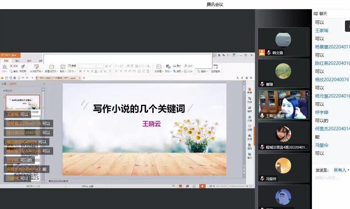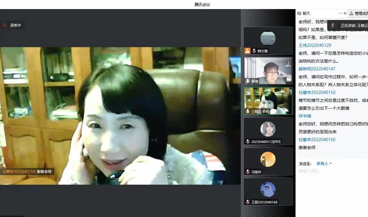 12月13日下午,作家王晓云应滚球买球的app官网邀请,通过腾讯会议与基础写作课校内教师韩文霞、曹刚一同为汉语言文学专业2022级学生线上讲授“小说的写作”。