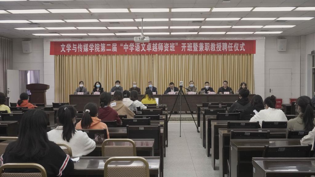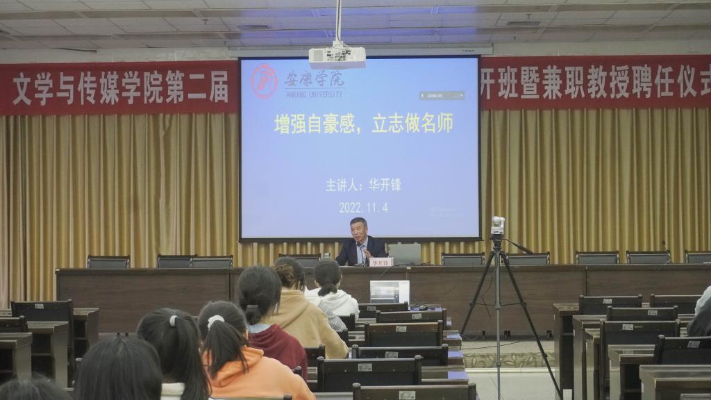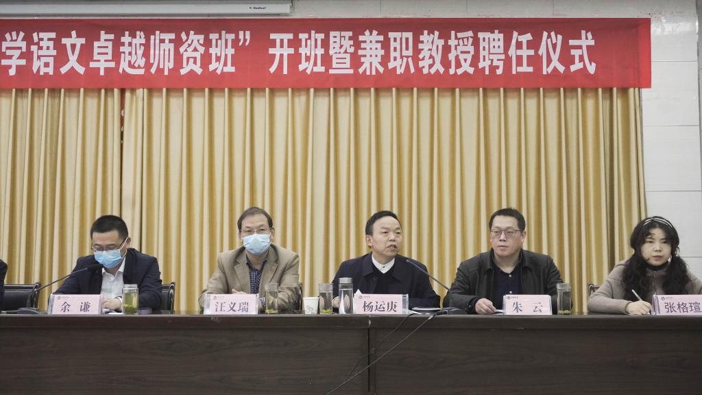 2022年11月4日下午,为持续优化汉语言文学专业的师范生培养质量,实现人才培养与行业发展的紧密对接,滚球买球的app官网第二届 “中学语文卓越师资班”开班暨兼职教授聘任仪式在图书馆六楼报告厅成功举行。副校长余谦、教务处处长汪义瑞、行业导师暨滚球买球官网优秀校友华开锋和程时进、滚球买球的app官网领导班子成员及班主任出席了开班仪式。开班仪式由滚球买球的app官网副院长朱云主持,分会场1018和2315教室通过腾讯会议同步观看了全程内容。